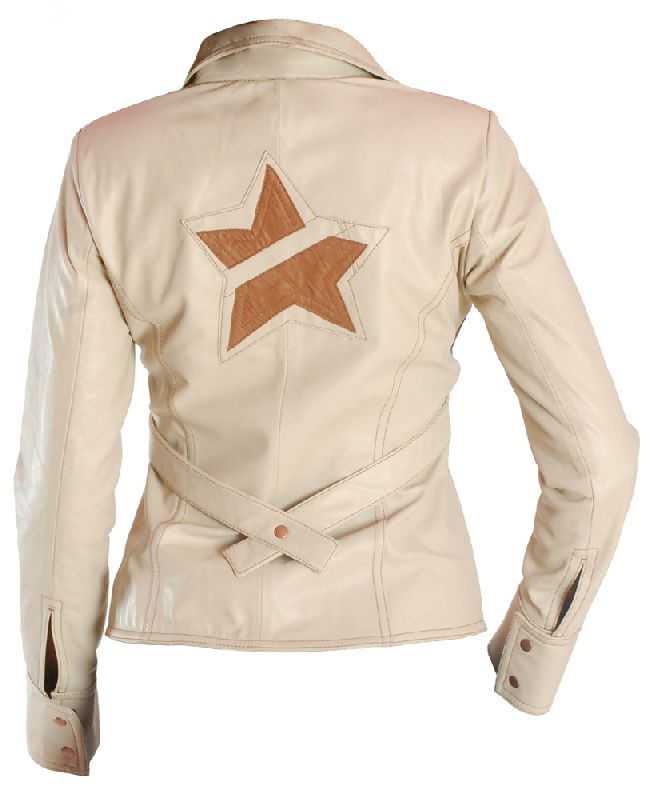 Молодежная куртка из натуральной кожи бежевого цвета.