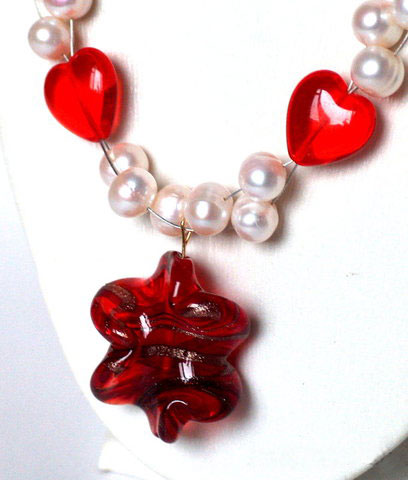 Крупный речной жемчуг, венецианская бусина, чешское стекло.