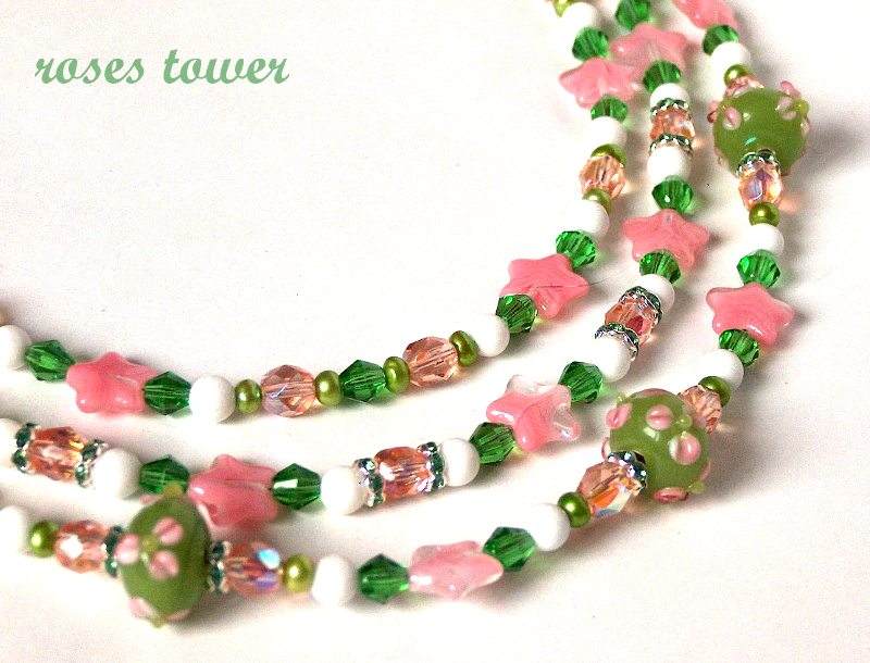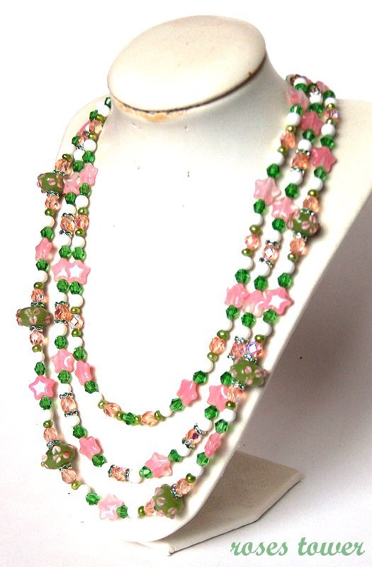 Бусины лэмпворк, чешское стекло, крашенный речной жемчуг, имитация агата, стразы.