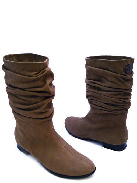 Модель без молнии, с широким голенищем, собранным мягкими складками.