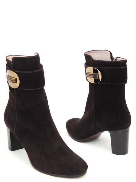 Удобные и элегантные короткие сапоги из натуральной замши глубокого коричневого цвета.