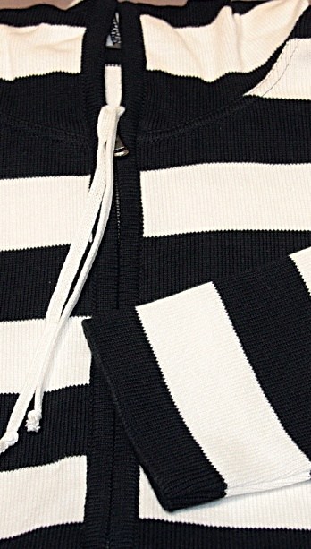 Джемпер мужской на молнии (разъемной) с капюшоном в черно-синюю и белую полоску производства Австрии