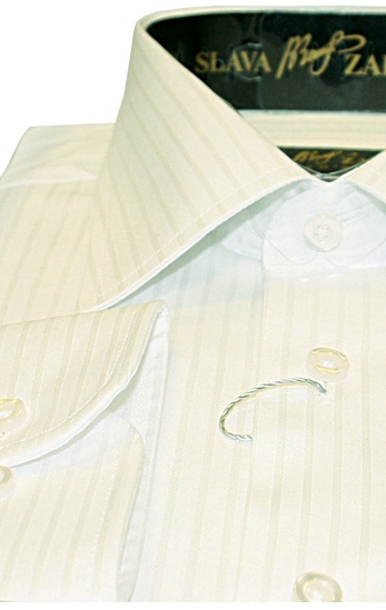 Рубашка мужская, Slava Zaitsev в фактурную полоску, полуприталенная, с длинным рукавом, классический ворот. Белого цвета из 100% хлопка отличного качества от российского производителя. Отлично будет смотреться под
