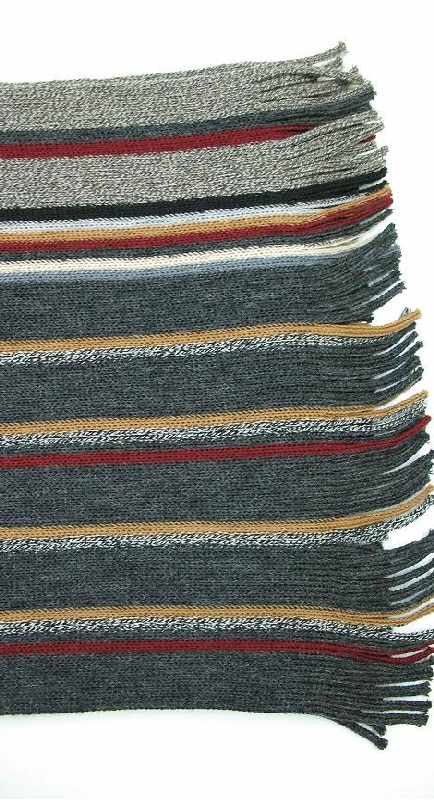 Классический мужской шарф серого цвета в тонкую разноцветную полоску.