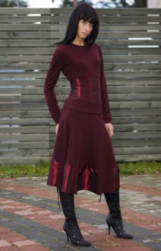 Элегантный трикотажный костюм насыщенного бордового цвета.