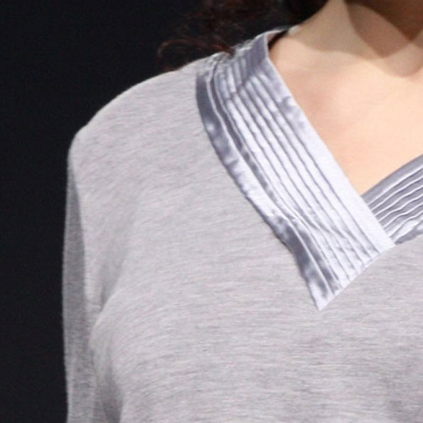 Модель спокойного серого цвета, ее можно сочетать со строгой юбкой-карандаш или классическими брюками.