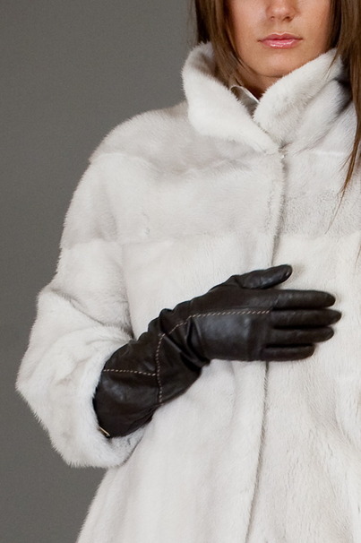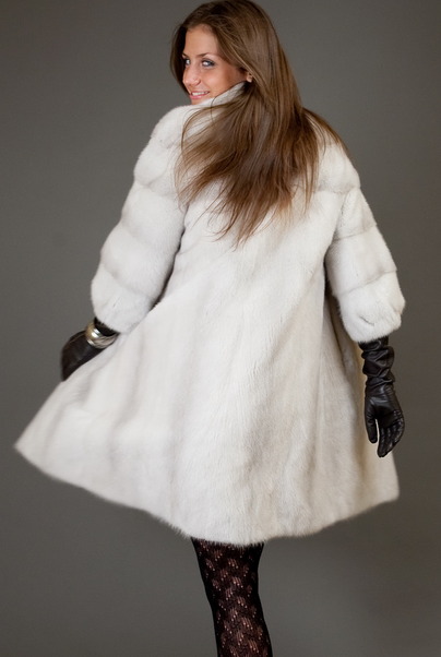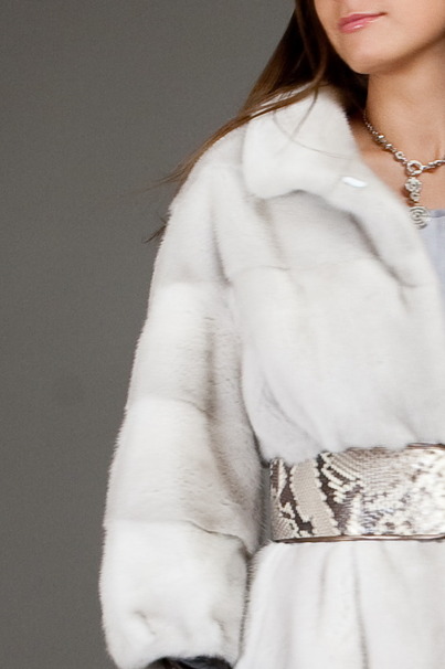 Эта модель имеет немного расклешенный покрой, создающий ощущение летящего силуэта. Ощущение легкости и полета достигается с помощью современной технологии роспуска шубы от кокетки. Рукава и кокетка выполнены из пластин норки поперечной раскладки.