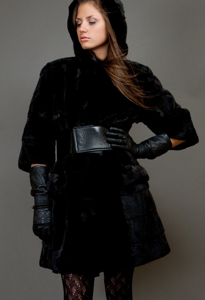В отличие от американских пород, эта норка имеет очень мягкую кожу, которая великолепно смотрится в складках и не создает ощущения стоящего коробом объема.