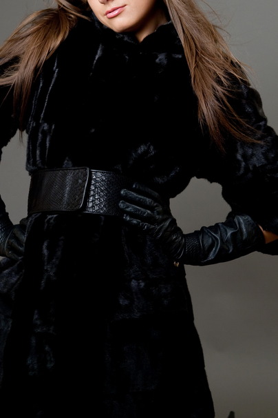 К шубе можно подобрать широкий кожаный пояс из кожи редких животных.