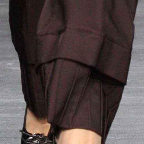 Оригинальной деталью является сложный крой низа брюк.