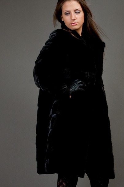 Норковое полупальто из черной благородной черной коротковорсовой норки датской селекции VELOURE.