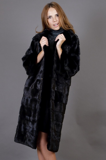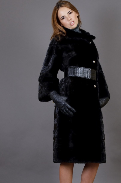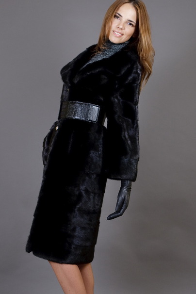 Роскошная норковая шуба представительного черного цвета из норки VELOURE.