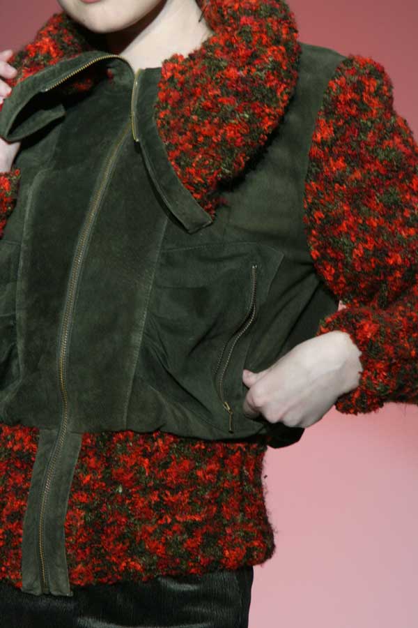 Рукава и низ куртки, а также воротник выполнены из очень теплого и мягкого мохера, ручная вязка.