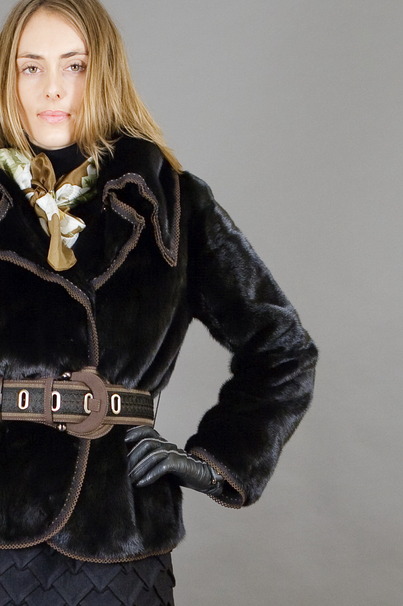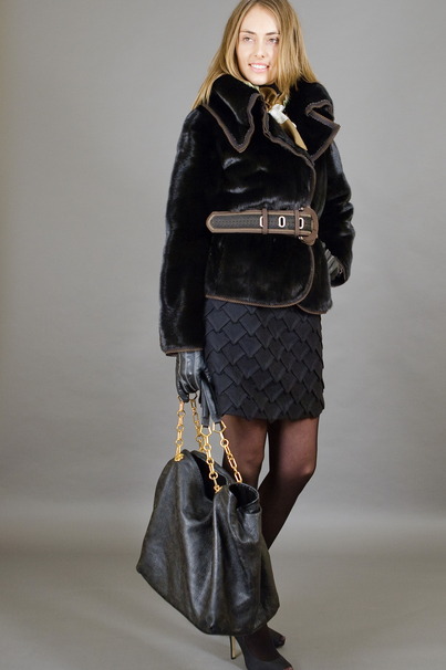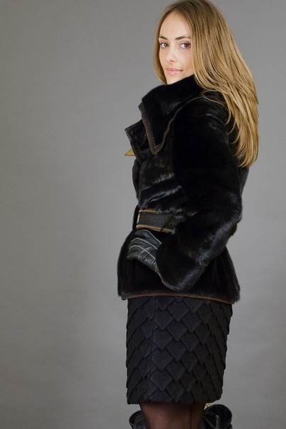 Укороченная норковая шубка-автоледи с большим отложным воротником.