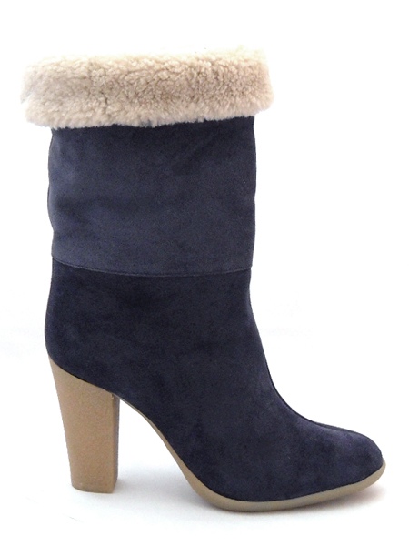 Элегантные зимние ботильоны из натуральной замши глубокого синег цвета.