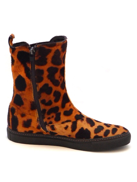 Материал верха: натуральные мех пони, окрашенный под леопарда, подкладка и стелька сделаны из телячьей кожи.