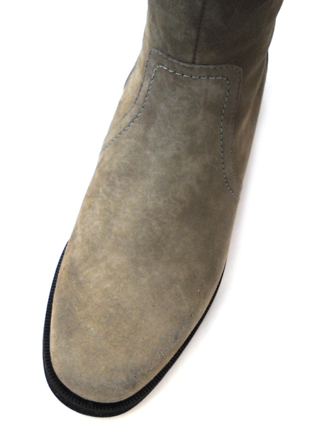 Материал верха: натуральная замша цвет мокрого песка (серо-бежового), подкладка и стелька - натуральная кожа. Голенище высотой 36см, сбоку молния.