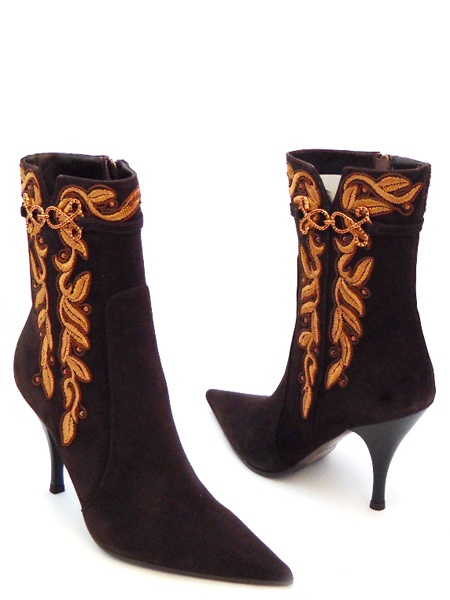 Итальянские полусапожки с изящной вышивкой под золото из новой осенней коллекции.