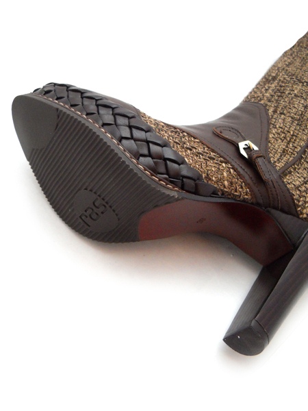Материал верха: телячья кожа темно-коричневого цвета и тканьс пропиткой под твид.
