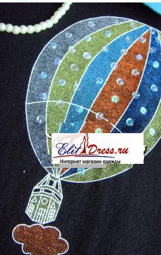 Туника из шерсти (смесовая ткань), низ украшен редкими пайетками, спереди интересный принт "Воздушный шар над городом".
