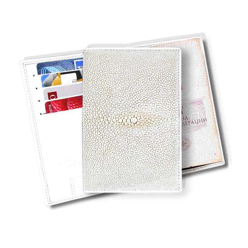 Белоснежная обложка для паспорта из кожи ската - отличный подарок для деловой женщины.
