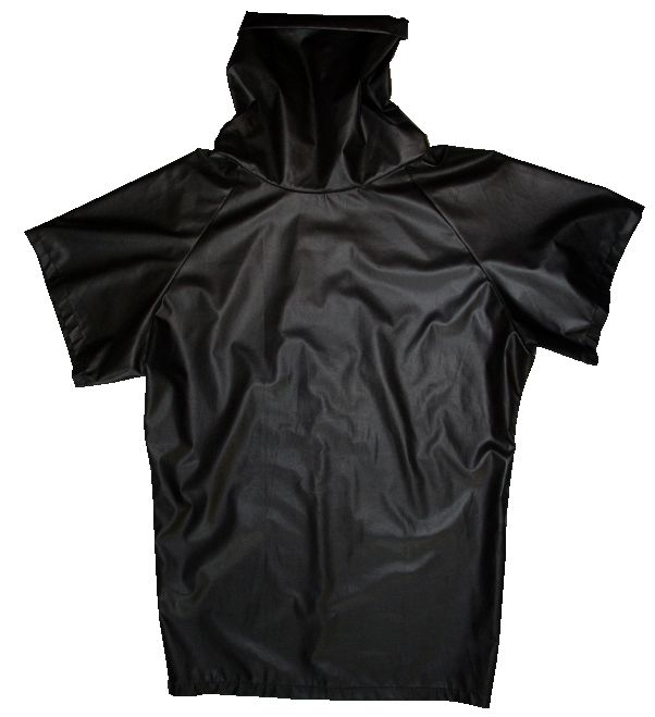 Молодежная куртка-жакет из черного латекса от дизайнерского бренда WTFC для смелых и уверенных в себе девушек.