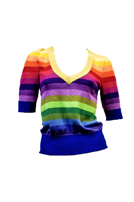 Яркий джемпер с разноцветную полоску разнообразит серые будни и поднимет настроение в любую погоду!
