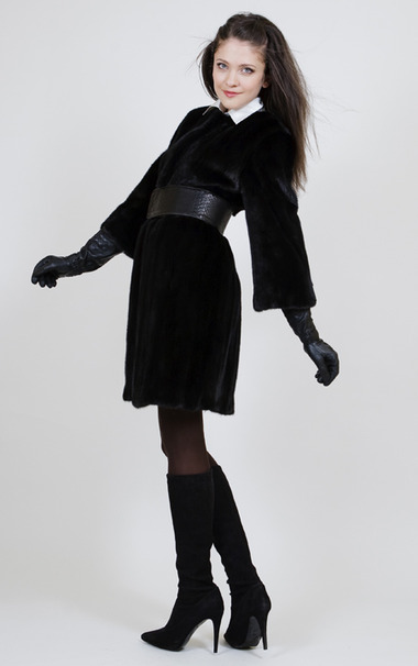 Очень эффектная модель шубы, выполненная из скандинавской норки с аукциона Kophenhagen furs. Верх шубы идеально облегает фигуру, а от пояса норковая шуба слегка расклешается и шьется из норки в горизонтальной раскладке. Благодаря густоте меха и мягкой выделке свет «играет» при каждом вашем движении. В этой шубе, с эффектной раскладкой меха, вы всегда будете обворожительны и неповторимы