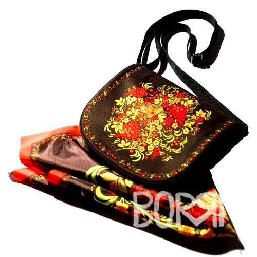 Размеры: сумка - 22*20*5 см, платок - 55*55 см