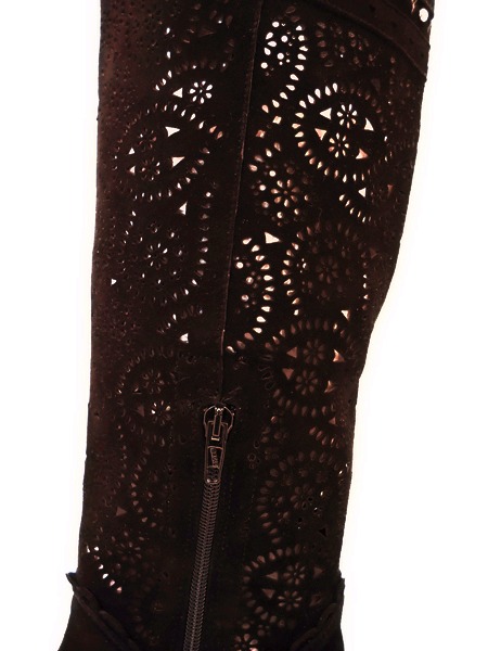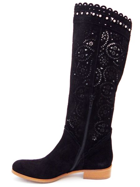 Ажурные летние сапоги из натуральной перфорированной замши черного цвета.