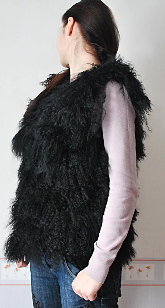 Жилет из меха ламы комбинированный с кожей черного цвета
