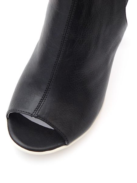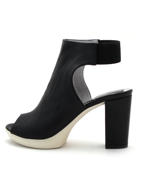 Открытые ботильоны из натуральной кожи черного цвета. Закрытая щиколотка и открытые мыс и пятка - тренд сезона весна-лето 2010.