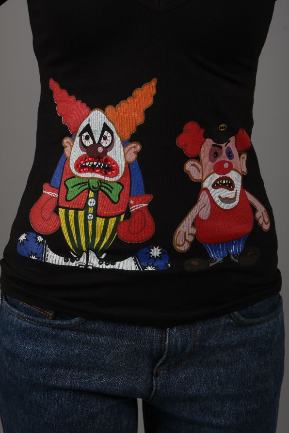 Два клоуна на футболке для девушек, предпочитающих больше