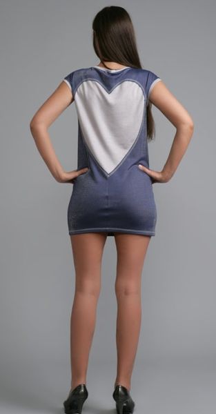 Немного дерзкое и забавное платье. Принт в виде сердца на спине придает платью оригинальности и озорства. В таком наряде вы всегда будете выглядеть молодо, свежо и необычно. Этот наряд, наверняка, станет одним из самых любимых в вашем гардеробе, ведь в таком платье просто невозможно остаться незамеченной!