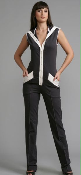 Комбинезон – это всегда удобно и оригинально. С его помощью всегда можно создавать актуальные образы для любого события. Отделка белого цвета очень освежает и придает шик. Идеально скроенный этот великолепный комбинезон станет одной из самых любимых вещей в вашем гардеробе.