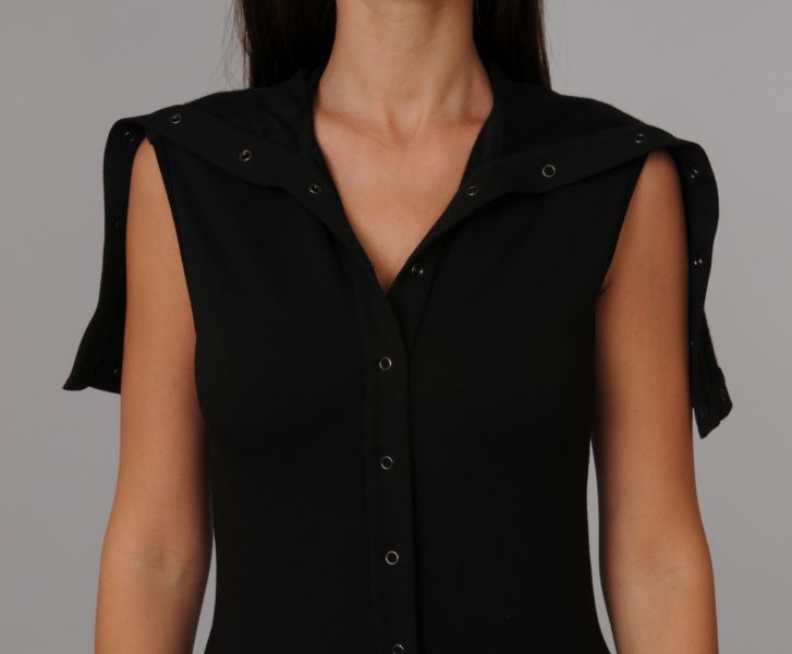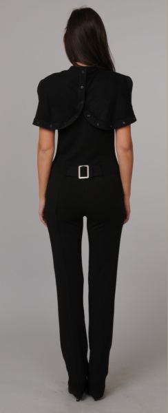 Стильный и удобный комбинезон незаменим для будней в мегаполисе. Надев его вы сразу же почувствуете себя королевой городских джунглей. А дополнив этот наряд подходящими аксессуарами, вы легко превратите его в вечерний костюм. Оригинальной деталью этого комбинезона является капюшон на кнопках, который можно застегнуть или расстегнуть, придав ему желаемую форму.