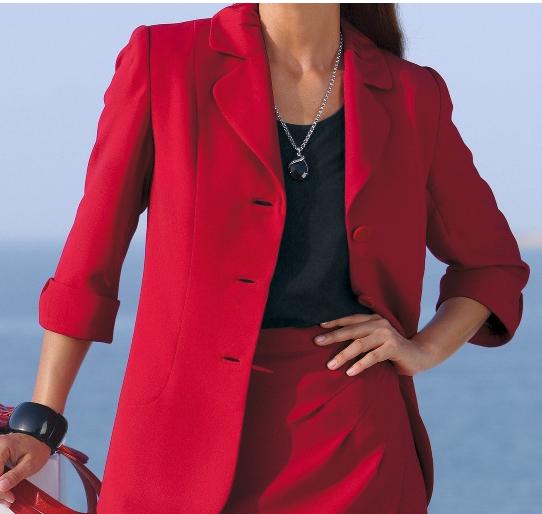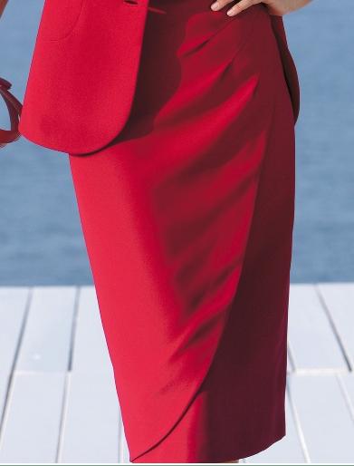 Элегантный костюм двойка благородного красного цвета с зауженной юбкой с защипами. Удачное решение для яркой и уверенной в себе женщины.