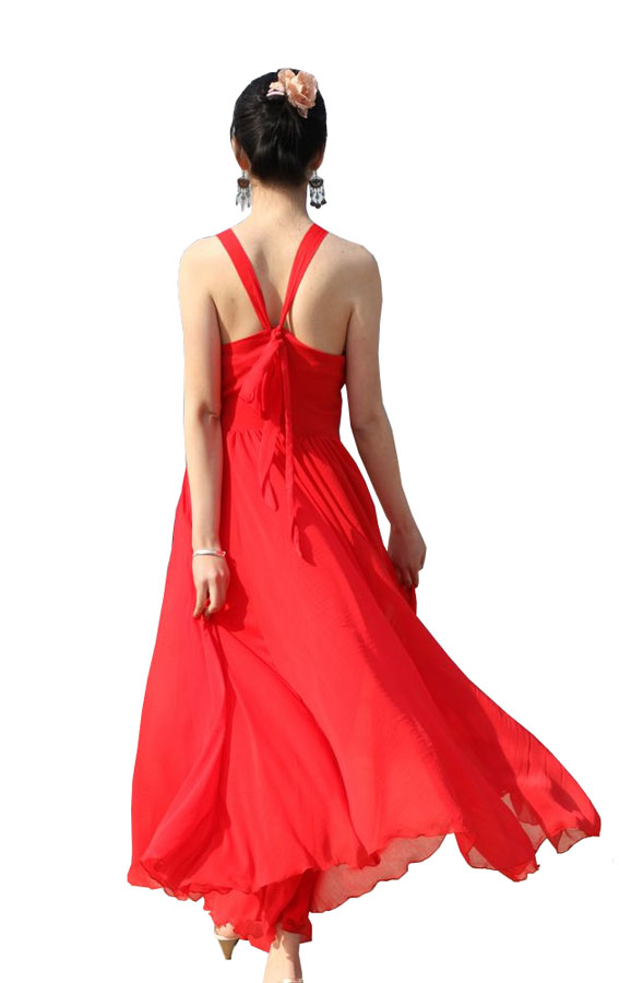 Эффектное красное платье макси-длины, несомненно, станет хитом этого лета. Модель, в которой сочетается комфорт и элегантность, романтика и женственность. Открытая зона декольте, лиф на завязках, втачная кулиска по линии талии и развевающаяся лёгкая шифоновая юбка формируют этот монохромный ансамбль, призванный притягивать всё внимание к Вашей персоне.