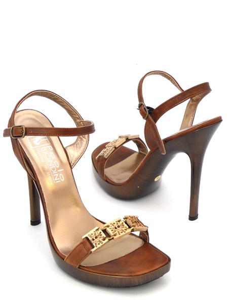 Красивые стильные босоножки на высокой шпильке темно-коричневого цвета с легким бронзовым оттенком итальянской марки PAOLO BIONDINI из натуральной кожи с фурнитурой в виже деревянных квадратиков, украшенных этническим орнаментом подойдут как к летнему сарафану так и и к вечернему платью. Удобная подошва и функциональная колодка удобны для длительного ношения и не дадут вашим ножкам устать
