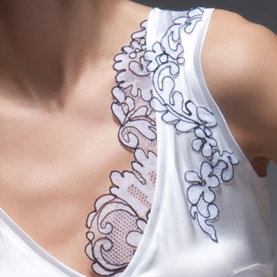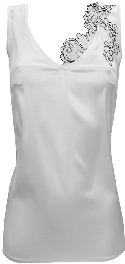 Белая шелковая майка с кружевной отделкой из коллекции BLACK&WHITE / LUXURY. Белый цвет кажется невинным лишь неискушенному взгляду. Холодная стерильная белизна играет недоступность и провоцирует на завоевание, словно снежные шапки гор. Черная юбка-баллон с завышенной талией встретившись в одном наряде, обеспечат блистательный эффект!