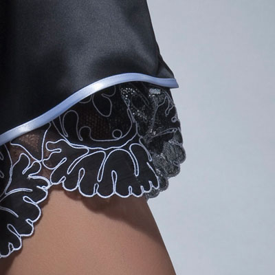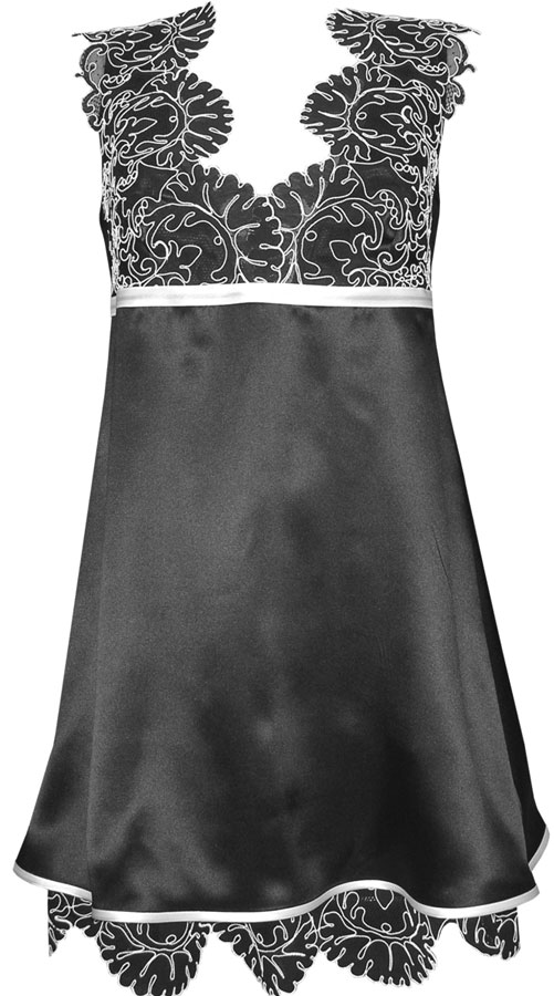 В этом сезоне, тон в котором задаст бельевой стиль, платья с акцентом на вырезе особенно актуальны. Черное платье с кружевами с завышенной талией, которую подчеркивает белая окантовка, ярко выделяется среди привычных вечерних нарядов. Модель из коллекции BLACK&WHITE / LUXURY.