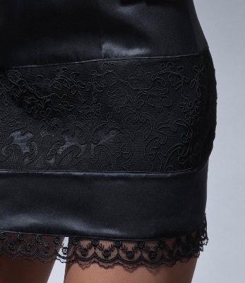 Шелковое коктейльное короткое платье, украшенное кружевами ручной работы по линии декольте и на бедрах. Приталенный и зауженный на уровне бедер силуэт делает женщину в нем невероятно сексуальной. Модель из коллекции BLACK&WHITE / LUXURY.