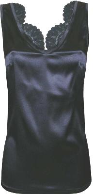 Нежнее нижнего… Чернее черного…Шелковый приталенный топ. Линия декольте украшена тончайшим кружевом ручной работы. Модель из коллекции BLACK&WHITE / LUXURY. Прямые широкие классические брюки с отворотами встретившись в одном наряде, дополнят ваш загадочный образ!