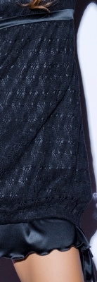 Черное платье-туника из атласного и вязаного шелка из коллекции BLACK&WHITE / CASUAL. Свободный крой, рукава из атласного шелка и капюшон, сделает образ менее формальным.