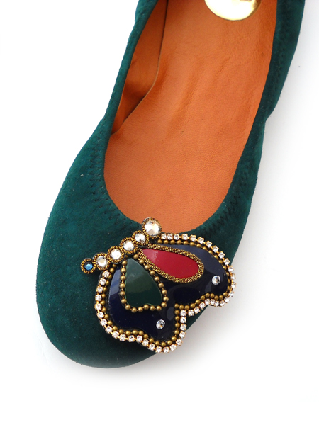 Потрясающе женственные, нежные, насыщенного зеленого цвета - хита этой зимы. На мысу балетки украшены красочной лаковой бабочкой, на крылышках которой сверкают стразы. У данной модели удобнейшая колодка, мыс закруглен.
