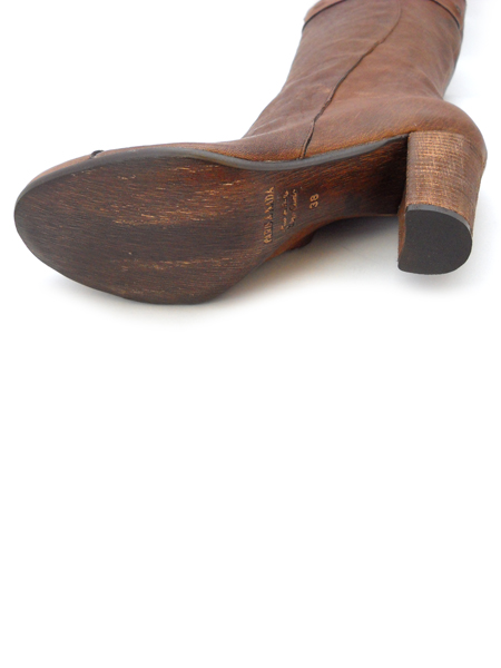 Материал верха: нат. кожа цвета темной ржавчины и эффектом состаренности. подкладка и стелька -нат. кожа. Молния сбоку. Высота голенища 33см.