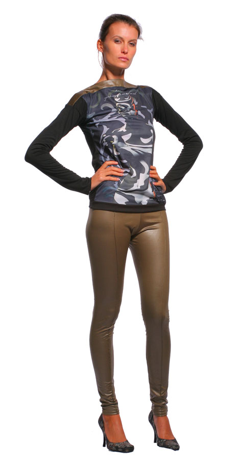 Идеальным дополнением к этим леггинсам будет черно-белый джемпер из этой же коллекции.