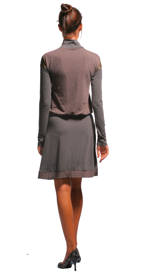 Платье классической средней длины до колена, длинные рукава и воротник-стойка. Небольшая полоска кружева, которым декорирована область пояса придаст некоторую игривость Вашему образу. Очень милое платье, которое подойдет всем девушкам.