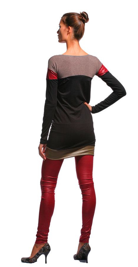 С этим мини платьем дизайнеры рекомендуют леггинсы бордо с эффектом кожи из этой же коллекции.