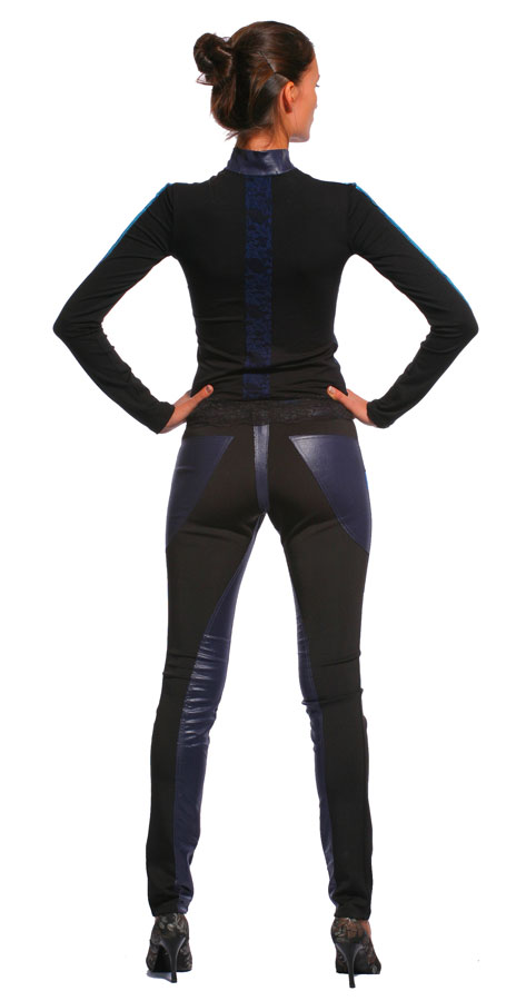 Дизайнеры рекомендуют носить эту олимпийку вместе с черными брюками с рельефной темно-синей отделкой из той же коллекции.